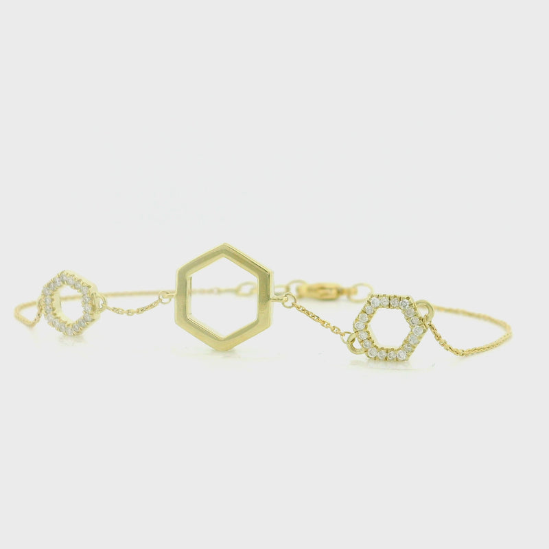 This Diamond Bracelet is expertly crafted from 10K Yellow Gold, featuring 0.20ct of natural diamonds for a radiant, timeless sparkle. The multi-dimensional 12mm by 10.8mm by 7.9mm by 7.3mm design and 6-inch length create a perfect balance of elegance and sophistication.