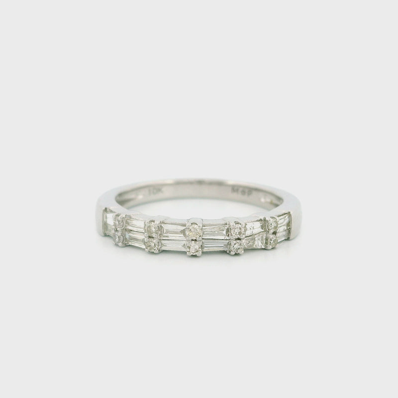 This Diamond Ring is crafted in 10K White Gold, featuring 0.38ct of natural white diamonds that provide a sparkling, elegant accent. With a 3.2mm design and 2.74g weight, it offers timeless elegance and refined sophistication.
