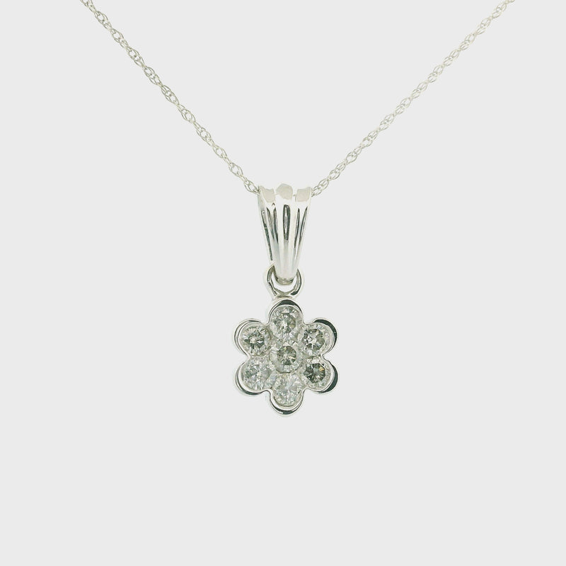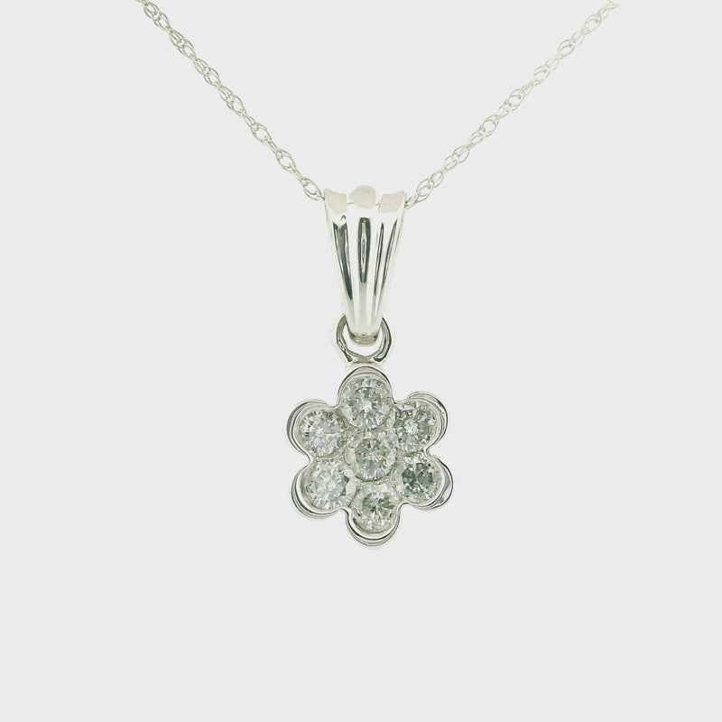 This Diamond Necklace is crafted in 10K White Gold, featuring 0.49ct of natural diamonds that radiate brilliance and charm. With a 9mm pendant design and an 18-inch length, it combines luxury and everyday elegance.